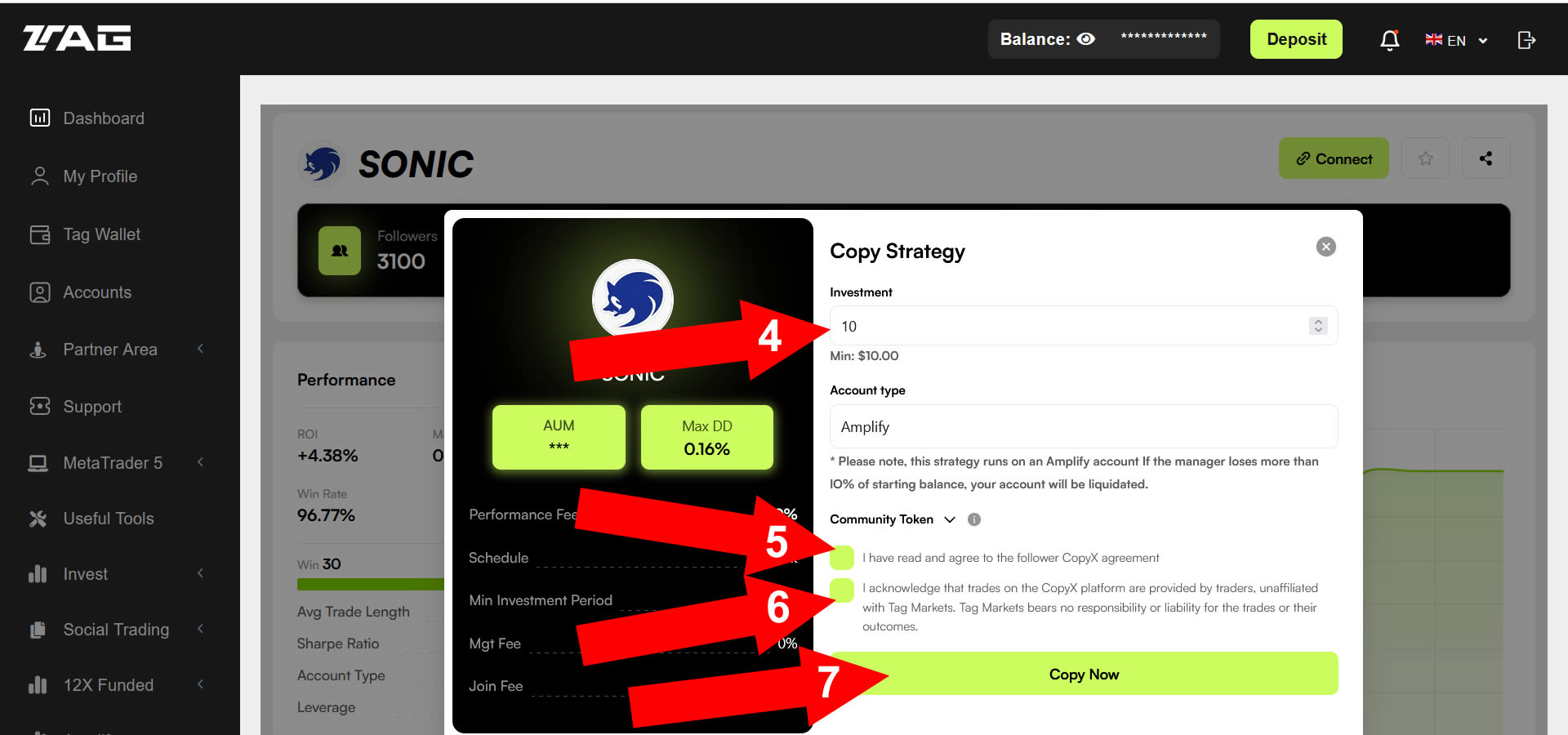 After you have made your deposit in TagMarkets, temporarily change your password (to something you don't mind me knowing), click on this to let me know (fill in the details) and I will connect you to SONIC AI with 24x your deposit!